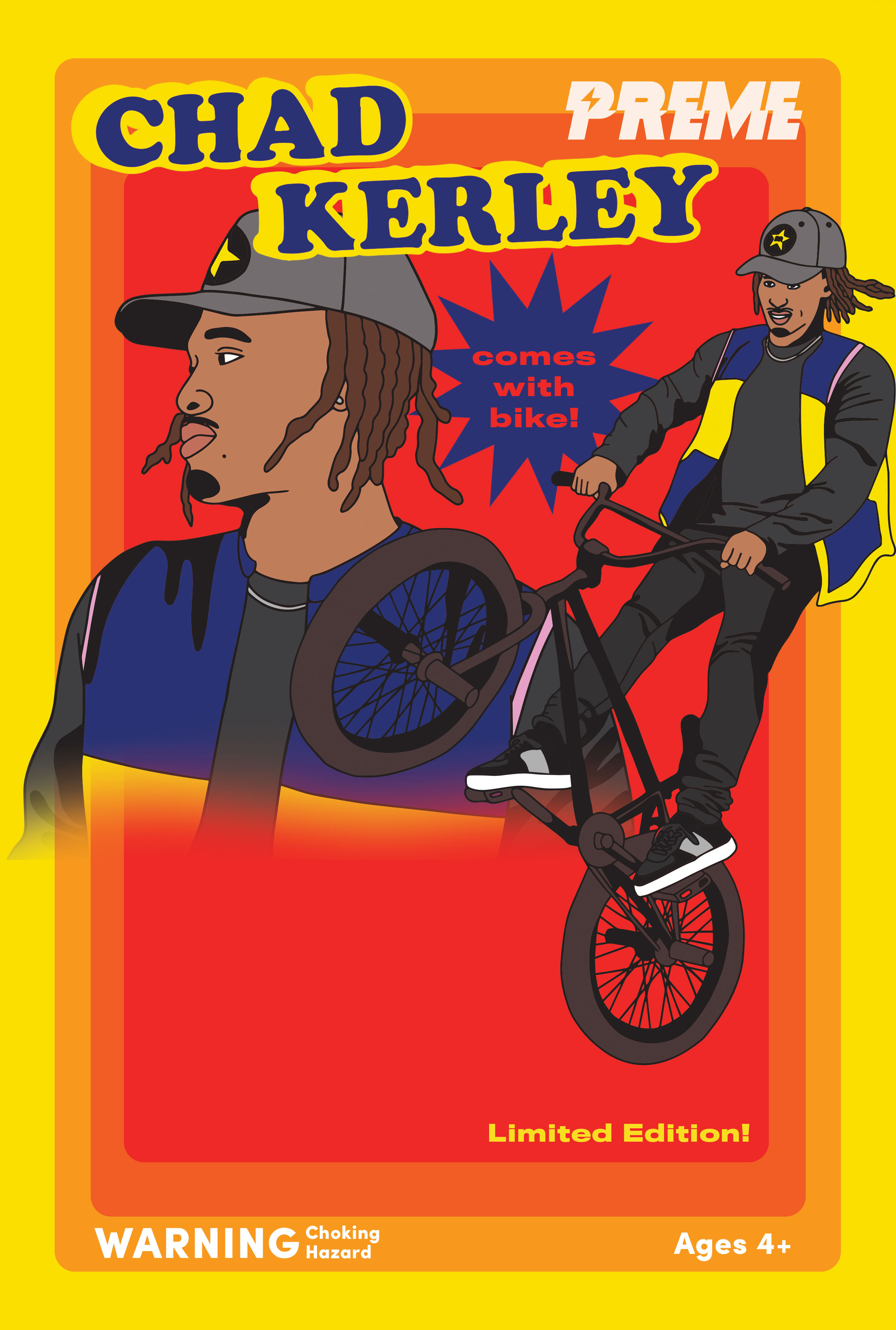 Package Design and illustration for Professional BMX'er Chad Kerley action figure x PREME.